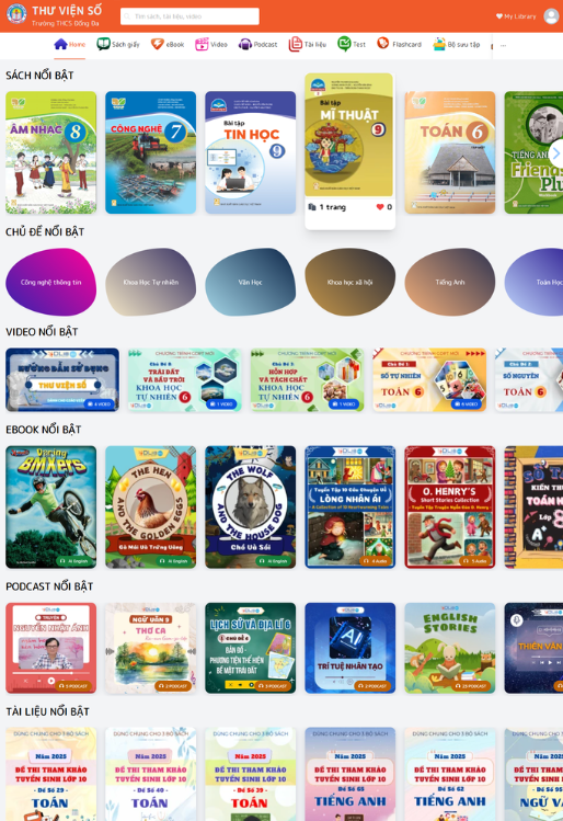 Triển khai hệ thống lưu trữ đám mây: Xây dựng một nền tảng Thư viện số dựa trên công nghệ đám mây cho phép quản lý và truy cập các tài liệu số. Đây là nơi học sinh và giáo viên có thể tìm kiếm, đọc, xem, nghe, luyện tập và tải tài liệu.